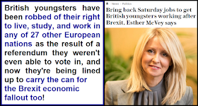 The Tory DWP minister Esther McVey has announced a bold new policy for mitigating the economic fallout from Brexit; she wants teenagers who were too young to even vote in the EU referendum to carry the can.